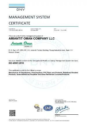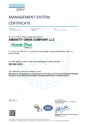 Amiantit Oman has secured the highest attainable recognition from Det Norske Veritas, popularly known as DNV, for Quality System Standard ISO-9001: 2015. Each of our employees participate in an ongoing quality improvement process with the goal of continual & sustainable improvement.